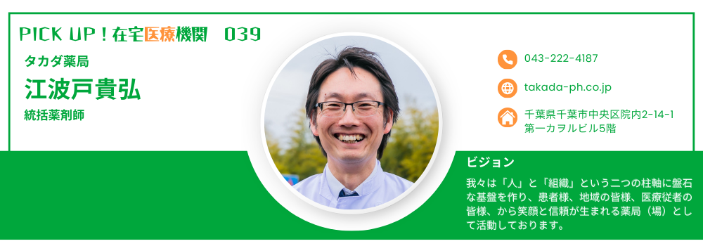 江波戸貴弘(タカダ薬局 統括薬剤師)|千葉市緑区・市原市・茂原市で地域を支える訪問薬局とかかりつけ薬局の実践