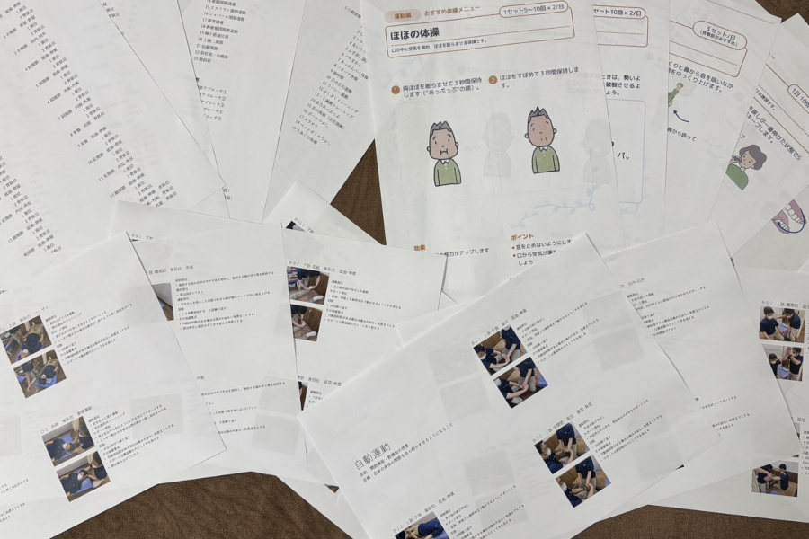 評価を可視化することを徹底しています。姿勢の変化を写真で記録したり、腕が上がる角度(万歳)を計測したり、あるいは「30秒間に何回唾液を飲み込めるか」というRSST(反復唾液嚥下テスト)の数値を記録したりします。これらを成績表のようにまとめ、3ヶ月ごとに再評価してご家族や施設の方に報告書として提出しています。